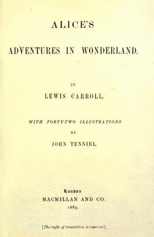 《爱丽丝漫游仙境》是卡罗尔兴之所致,给友人的女儿爱丽丝所讲的故事,写下后加上自己的插涂诳谕给了她。后来在朋友鼓励下,卡罗尔将手稿加以修订、扩充、润色后,于1865年正式出版。故事讲述了一个叫爱丽丝的小女孩,在梦中追逐一只兔子而掉进了兔子洞,开始了漫长而惊险的旅行,直到最后与扑克牌王后、国王发生顶撞,急得大叫一声,才大梦醒来。这部童话以神奇的幻想,风趣的幽默,昂然的诗情,突破了西欧传统儿童文学道德说教的刻板公式,此后被翻译成多种文字,走遍了全世界。